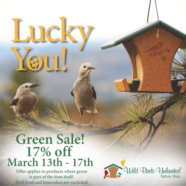 Save 17% on select green products, including feeders, gifts, décor, and more. It’s a fun way to add a little green to your backyard while supporting the birds you love to watch.