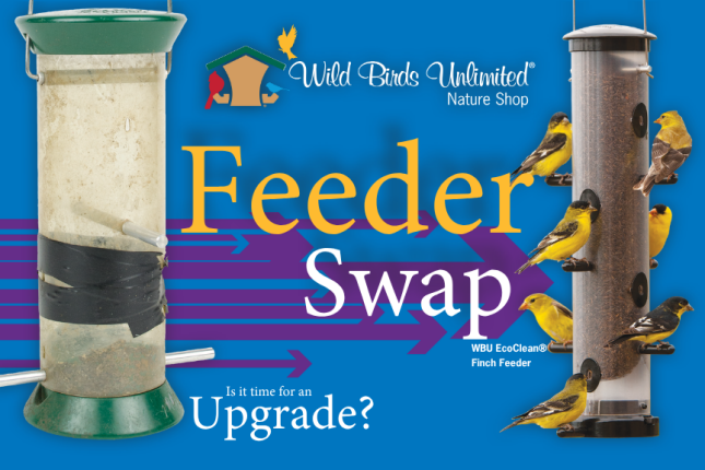 Stop in and enjoy 20% off any feeder of any type* with the exchange of a feeder (Wild Birds Unlimited feeders or other manufacturers)!