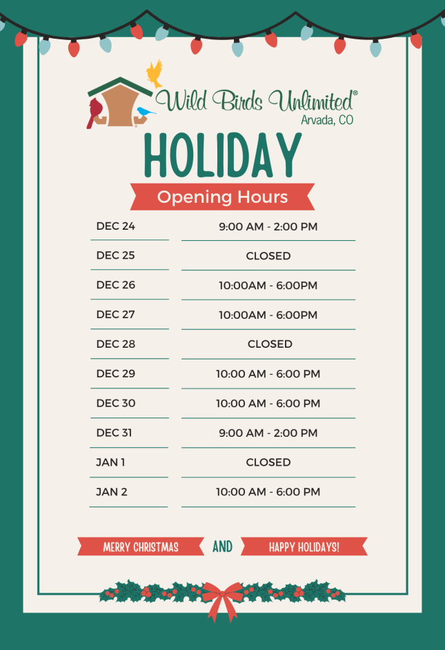 December featured products are; WBU Vertical Cylinder Feeders, Winter Blend and Heated Bird Baths