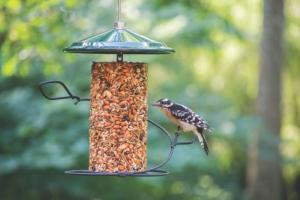 Unique bird food requires a unique bird feeder! Our green-roofed cylinder feeder is easy to fill and capable of housing all of our seed cylinders, our no-melt suet cylinders as well as our stackables (can hold 3 stackables or 1 cylinder). Compatible with our Multi-Use Tray and Seed Cylinder Cage.